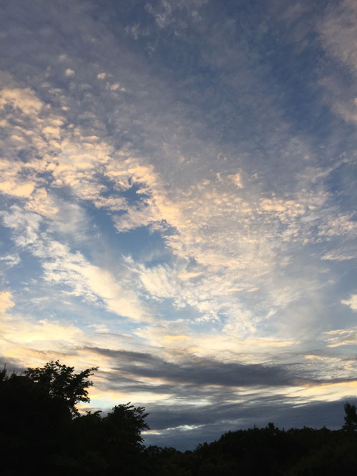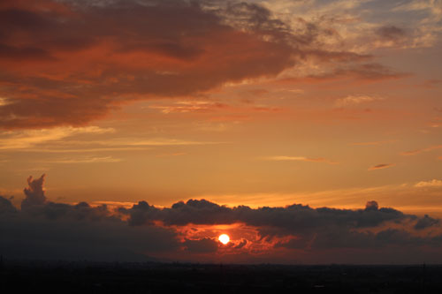 空は、左が夕焼け右は雨雲だったり、目まぐるしく変わる。