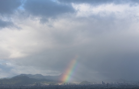 虹の上に白い月も浮かんでいてきれい~(^.^)