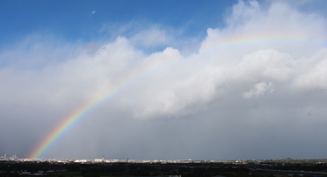 実はこの虹の写真を撮ろうと、ベランダに出るとき窓がなかなか開かないくらい
