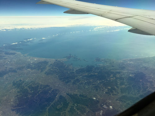 飛行機の窓から海岸線が見え、地図を見るとやはり東北・・牡鹿半島を過ぎて