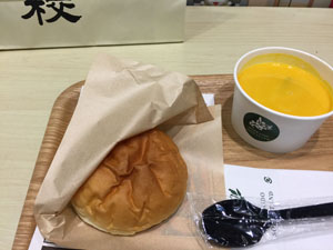 自宅でも軽く朝食をとってきたけど、空港で美味しそうなスープやさんがあったので