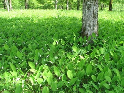 平取町芽生の野生スズラン群生地は15haあり、日本一の広さとのこと。