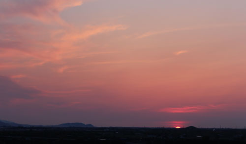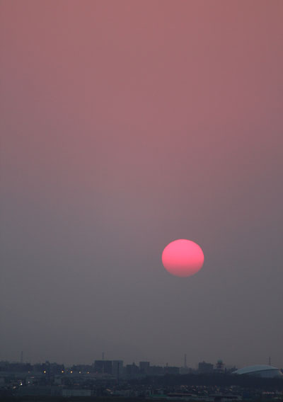 バスを降りて自宅に向かう途中、真っ赤な夕日が見えた。