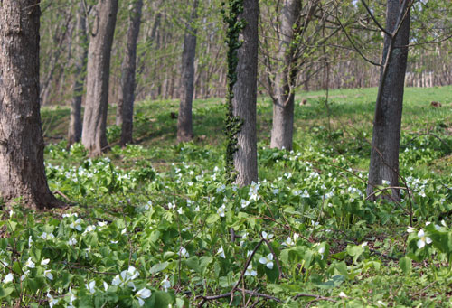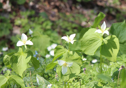 で、今まで知らなかったけれど、カタクリの後はオオバナノエンレイソウが一面に