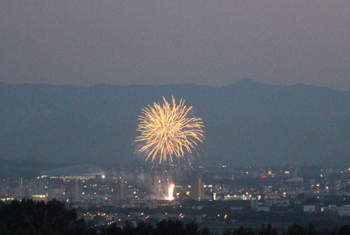 夏の日差しのような旭川で、束の間の春の花は花びらを落とす。