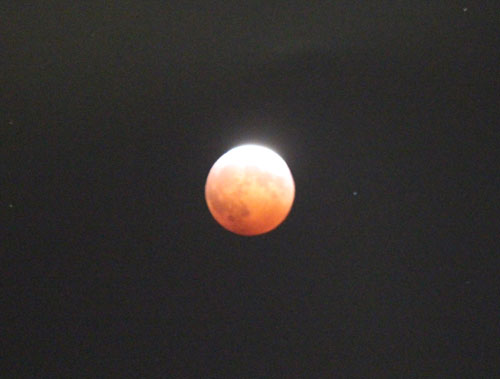 皆既月食の翌朝、もう月は沈んでしまっただろうと思いつつ、ベランダから