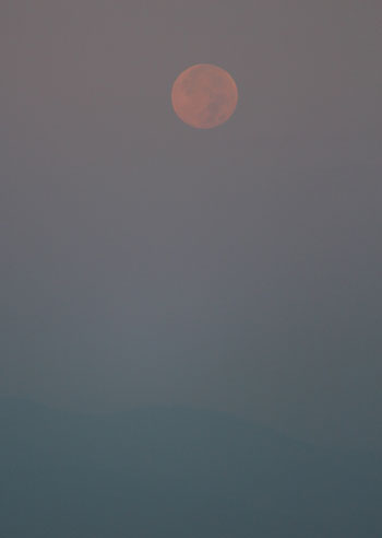 全部が陰になると、ぼわんと赤い月が浮かびあがりまるで違う世界に