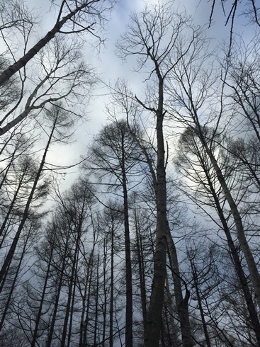 森の中で星が見えるかと楽しみにしてたのに、月が明るくて思ったほど見えず・・。