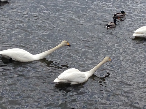 途中で、二羽の白鳥が飛んでいるのが見えた。