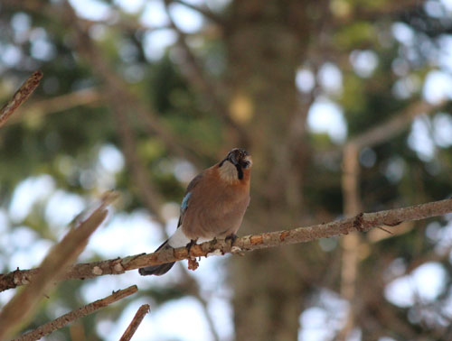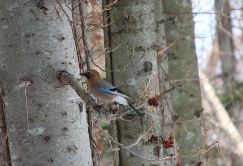 遊歩道近くにミヤマカケスが一羽。