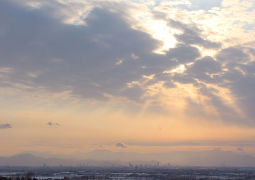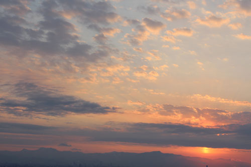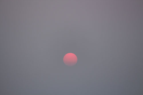 夕方、ふと外をみたら夕日が雲に消え入るように薄くなっていた。