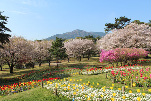 桜も咲いているしチューリップもたくさん植えられてまさに春爛漫♪