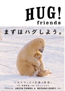 野生のホッキョクグマがハスキー犬をハグしている。