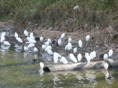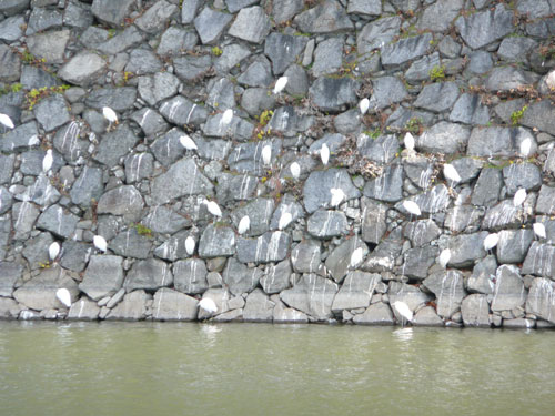 帰り道、サギが日向ぼっこしている・・と思ったら石垣にもたくさん止まっていた。