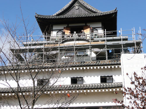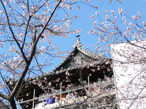 こちらも改修中で足場が組まれていた。