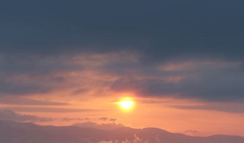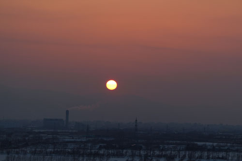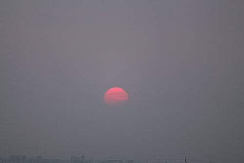 昨日の夕日は真っ赤だったのに写真には赤く写らない。