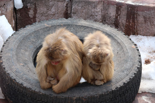 おサルさんは、足もちゃんと抱え込んでお昼寝中