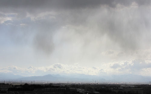 夕方近く外をみると、晴れた空にまだ雲が残り、薄いカーテンのように下がっていた。