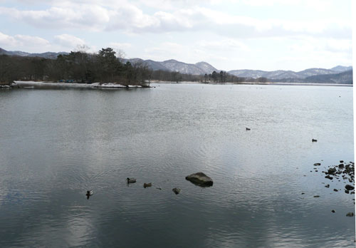途中、白鳥がいるかとちょっと大沼に寄ると、すでにガラ~ンとしていた。