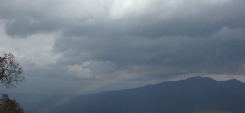 だんだん雲が多くなり、ポツポツと時々雨が落ちては晴れ、薄い虹も見えた。