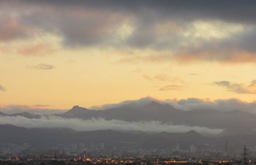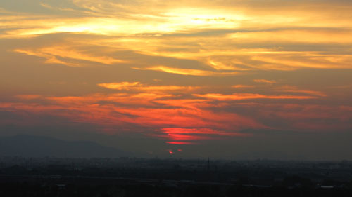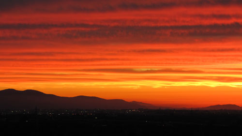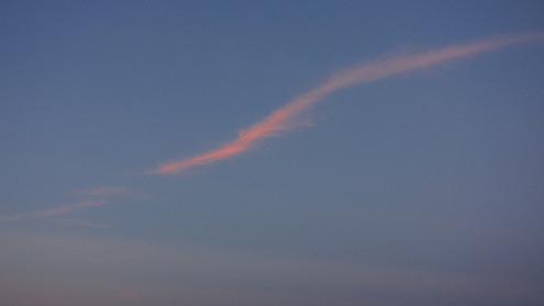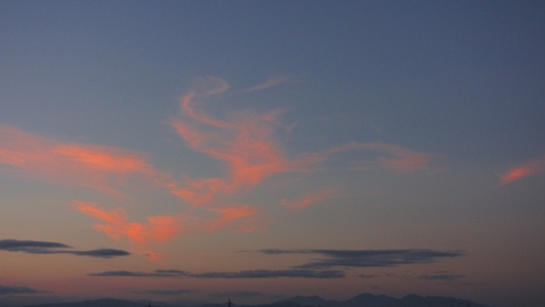 夕焼けモードで撮ったら、少しばかり大げさな赤になってしまったけど、切ないほどの雲が迫る。