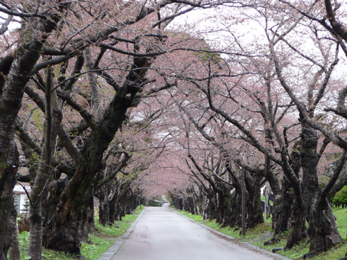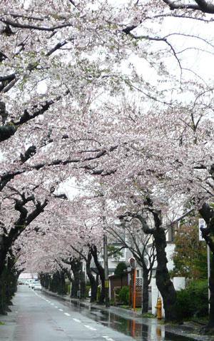函館市の住宅街 桜ヶ丘通りの桜並木は満開