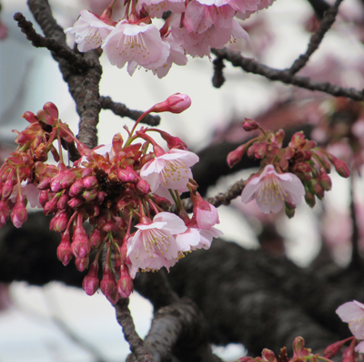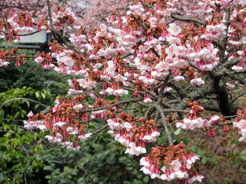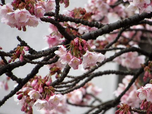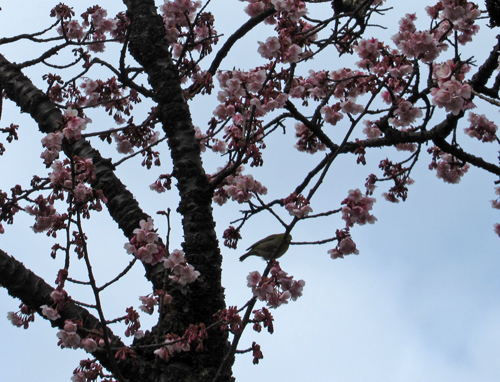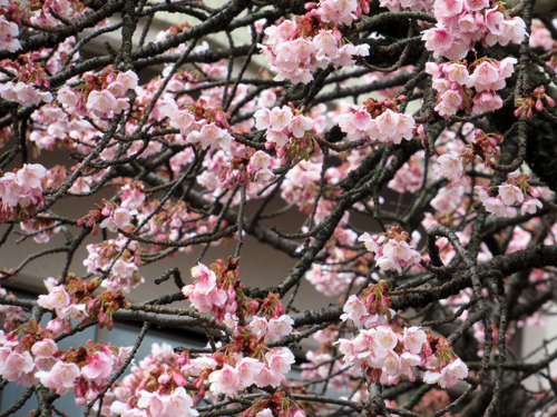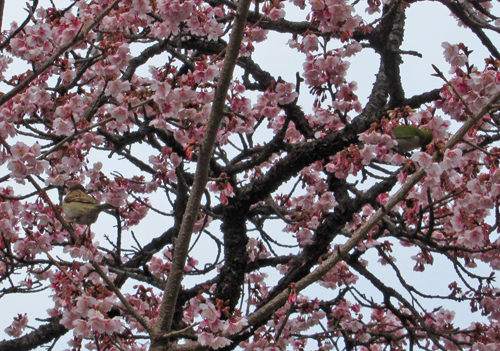 2月に桜が咲くなんて、北海道ではありえないので不思議な景色。
