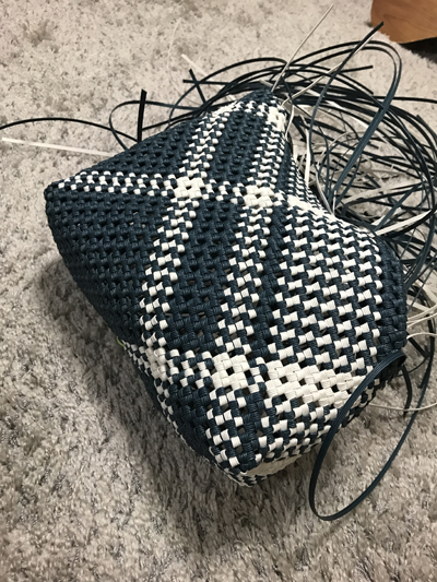 最近完成した石畳編みのバッグ。