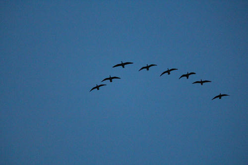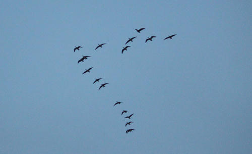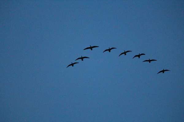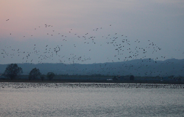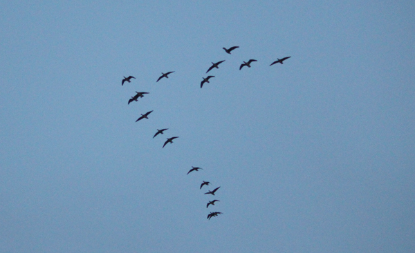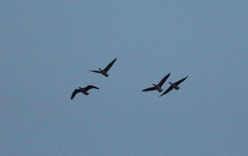風がとても強く、風に乗ったマガンたちがすごいスピードで帰ってくる。