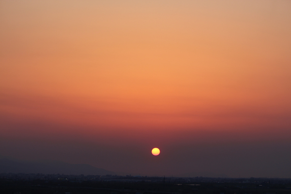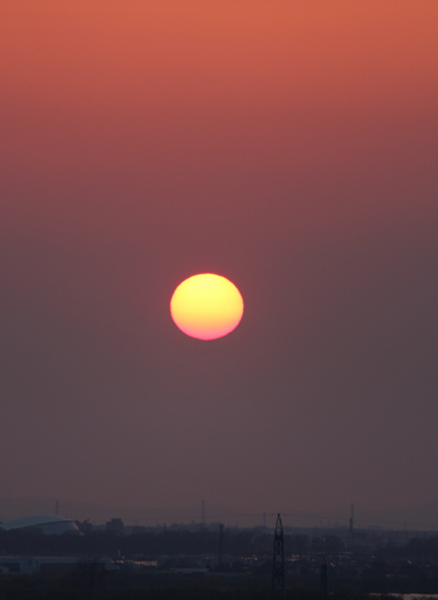 大気がかすんでいた日の夕日は真っ赤だった。