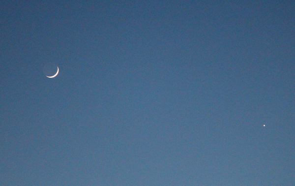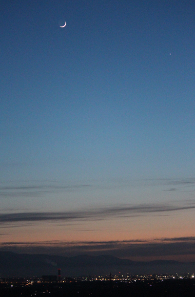 三日月の近くに星ひとつ。
