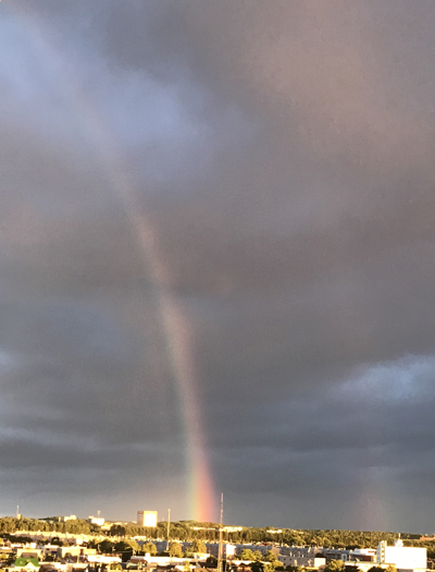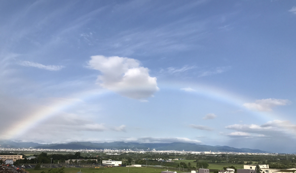青空なのにきれいな虹が架かる。