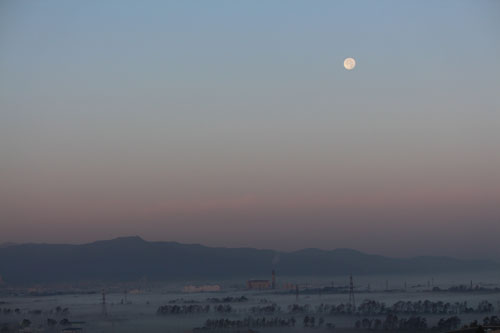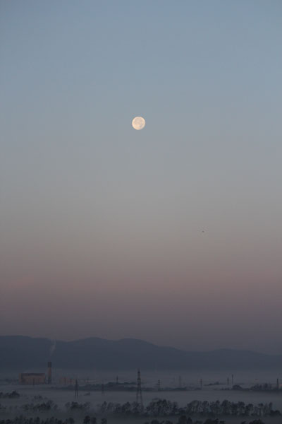 細い細い月が出ていた夕暮れ時。