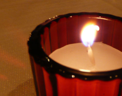ガラス玉と、ひとつひとつ手作りのワックスボールのキャンドルの灯りがとても