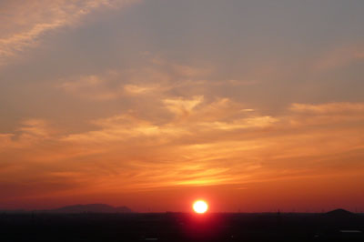 夕焼けも大きく見えた。