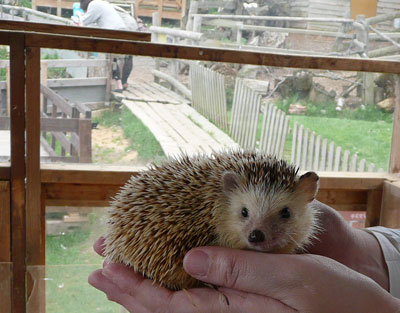 手から手へ・・ハリネズミがこの日一番の感激♪ カメラ目線で。