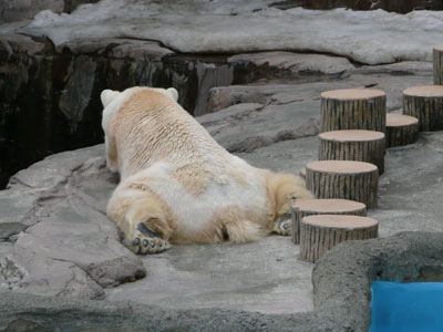 お目当ては、4月1日に来園者に公開されホッキョクグマの赤ちゃん。