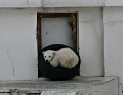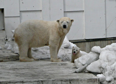 同行者のくろうささんとともに「世界の熊館」に向かうがシロクマ親子は