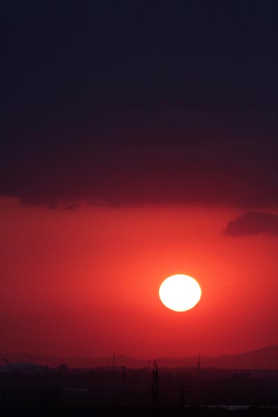 自分の目では、太陽が真っ赤なのにね・・。