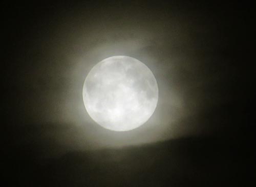 夜、寝る前にちょっと空を見上げてみたら、雲の合間から月が見えた。