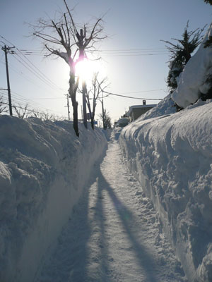 歩道から車道が見えないほど雪はたんまりあるけど、