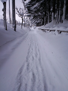 除雪が間に合ってなくて道幅もわからず、前もあまり見えず・・・、かすかに
