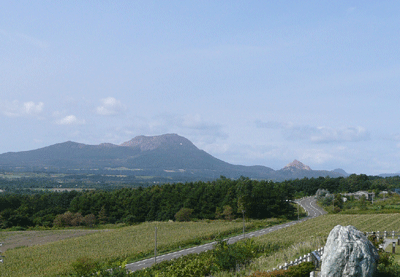 有珠山SAから 有珠山(正面)と昭和新山(右)