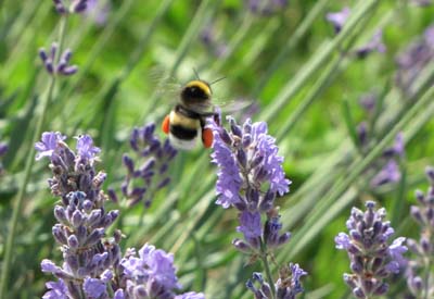 先月、美瑛で撮ったのだけど、よくみるとこのまるまるとしたミツバチはもしや?