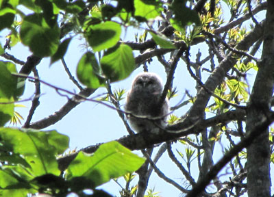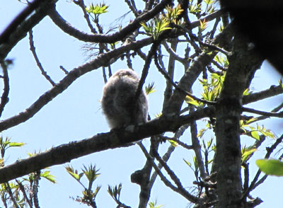 この画像だけではわからないのだけど、このヒナ、すごく高い木の枝にいる。