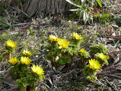 福寿草の黄色が目に鮮やかです。