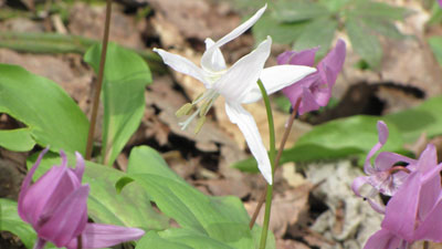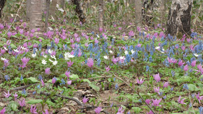 カタクリ、エゾエンゴサク(水色)、キクザキイチゲ(白)