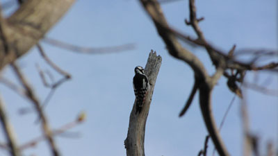 アカゲラは懸命のドラミング。