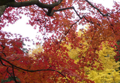 前夜の雨で、かなり葉が落ちていたけど、ポプラのようにまっすぐに空に向かう銀杏が