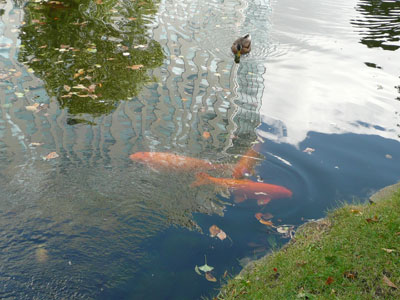 やたら大きな鯉がゆうゆうと泳いでいる。鴨の倍はありそう・・・(*_*)